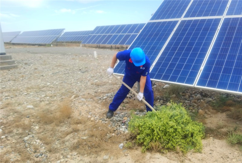 隨著(zhù)雨季的到來(lái),嘉峪關(guān)電站升壓站和光伏廠(chǎng)區內雜草生長(cháng)較快,為避免雜草生長(cháng)過(guò)高遮擋光伏組件引起熱斑效應以及影響發(fā)電量,防止對升壓站設備安全運行造成隱患,7月5日,電站決定組織全站人員對升壓站和光伏廠(chǎng)區開(kāi)展除草工作。