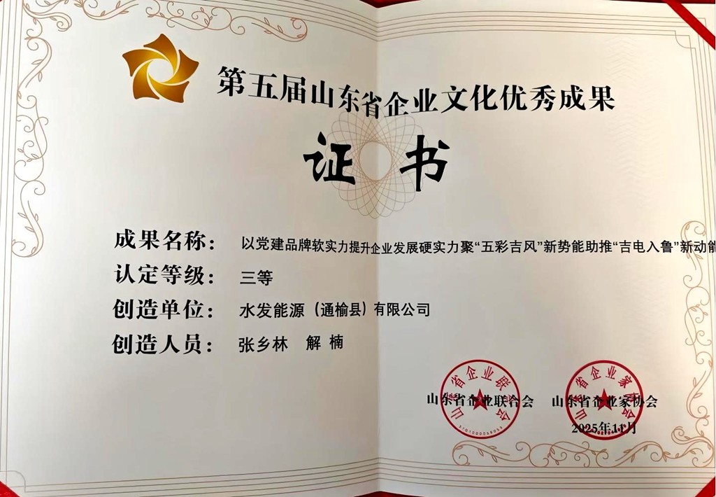 “五彩吉風(fēng)”黨建品牌榮獲第五屆山東省企業(yè)文化優(yōu)秀成果三等獎